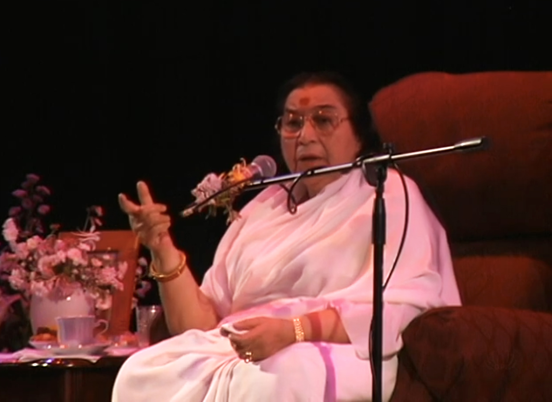 The grand climax to all the efforts, all the smiles and tears, all the obstacles and all the hopes, came far removed from the fresh, muddy reality of the Sahaja Yoga campsite: It peaked on Friday, June 23rd, 2000, in the other-worldly fable-island of New York City. The outcome of all that rehearsing was about to present itself on stage in the Big Apple. As seven p.m. approached and the ‘me-me-me’s and ‘la-la-la’s were becoming less frequent backstage, a whisper ran through the ranks: “Shri Mataji’s here!” Maybe there was never really any doubt that She, the very Heart of our inspiration, would actually come in Person. But now the sight of Her through the chinks of the stage decorations, settling down into a seat in the middle of the theater, was the hope above all hopes miraculously answered for each member of the company.